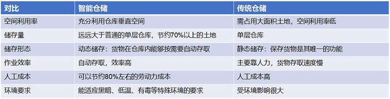 智能倉儲與傳統(tǒng)倉儲相比,從空間利用率、作業(yè)效率、人工成本等指標(biāo)來看,優(yōu)勢顯著,降本增效明顯。